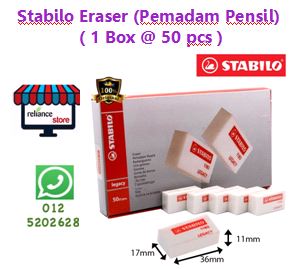 Stabilo | > High Quality Brand Stabilo > Good Quality Pencil Eraser (Rubber) > Packing : 1 box @ 50 cps > kindly contact us for more product information .... ** Tel No : 05-2420 628 ** H/P : 012-520 2628 ( whatsapp ) ** email : reliance.pacific@gmail.com ## TERIMA KASIH # THANK YOU ## |